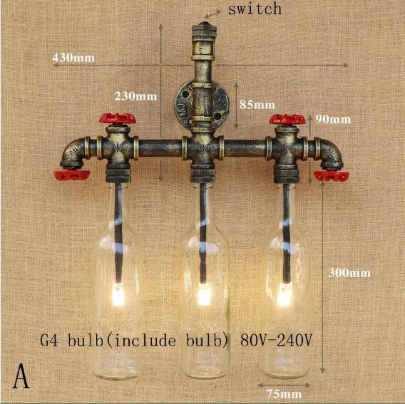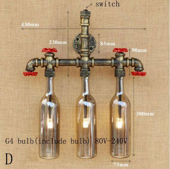 Nom du produit | Applique murale avec tuyauterie et bouteilles en verre coloré |