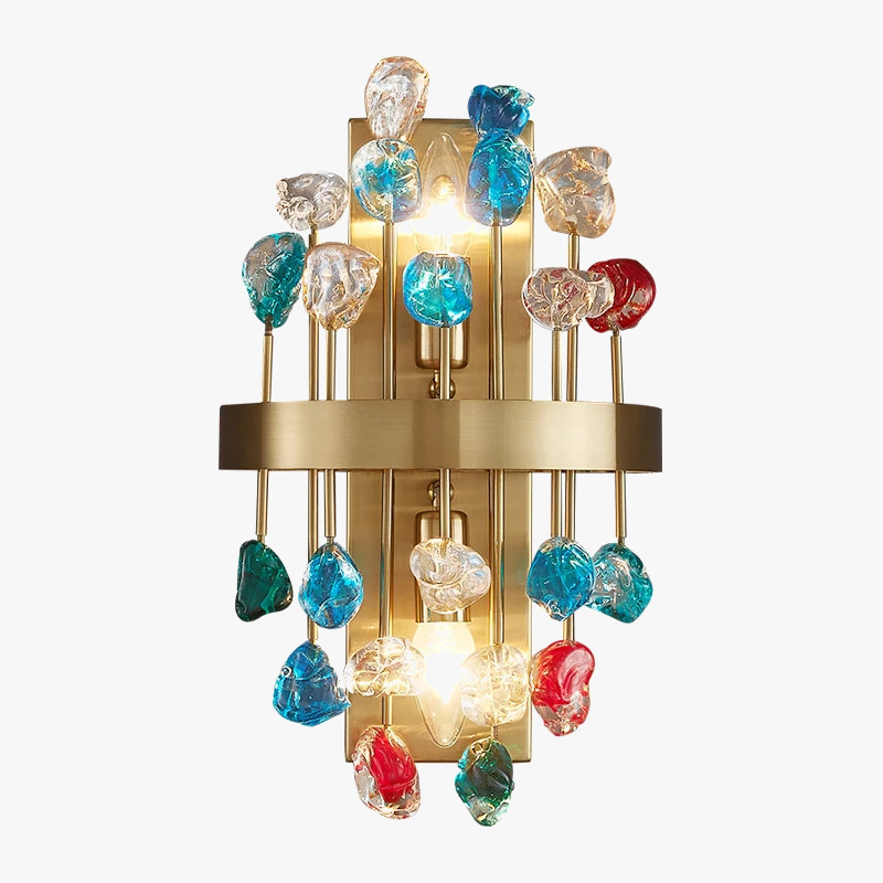 Fabriquée à partir de matériaux de haute qualité, cette applique est dotée d'une structure en alliage robuste et d'un abat-jour en verre soufflé à la main. Les détails en verre coloré ajoutent une dimension artistique à ce luminaire, attirant le regard tout en diffusant une lumière délicate à travers les différentes nuances de couleur. Que vous souhaitiez éclairer un coin lecture dans votre salon ou apporter une touche sophistiquée à votre salle à manger, cet éclairage est la solution idéale.