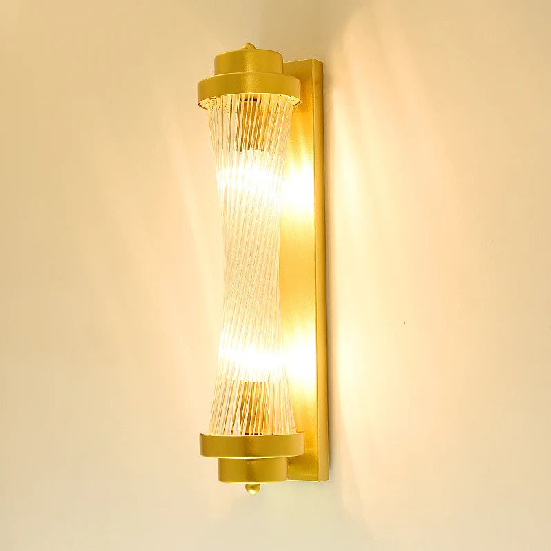 Cette applique murale est bien plus qu'un simple éclairage ; c'est une véritable œuvre d'art. Avec ses lignes épurées et son style post-moderne, elle se marie parfaitement avec divers décors, qu’ils soient industriels, scandinaves ou contemporains. Sa structure en métal, recouverte d'une peinture dorée, s’associe à un abat-jour en verre clair qui diffuse une lumière douce et agréable, tout en mettant en valeur la beauté du cristal.