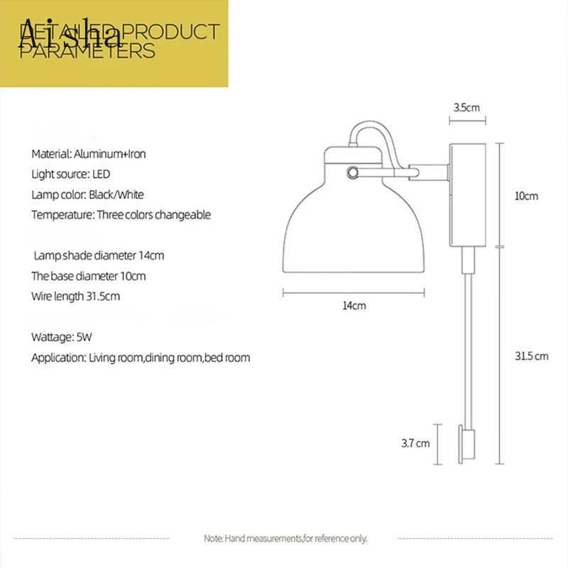 L’applique murale LED minimaliste se distingue par ses lignes simples et son esthétique moderne. Fabriquée en métal, elle est disponible en deux coloris : noir et blanc. Ces teintes neutres lui permettent de s’adapter à tous les styles d’intérieur, qu'il s'agisse d'un décor scandinave, industriel ou moderne. La surface en métal est soigneusement traitée pour garantir une durabilité et un éclat qui ne se décolorent pas avec le temps.