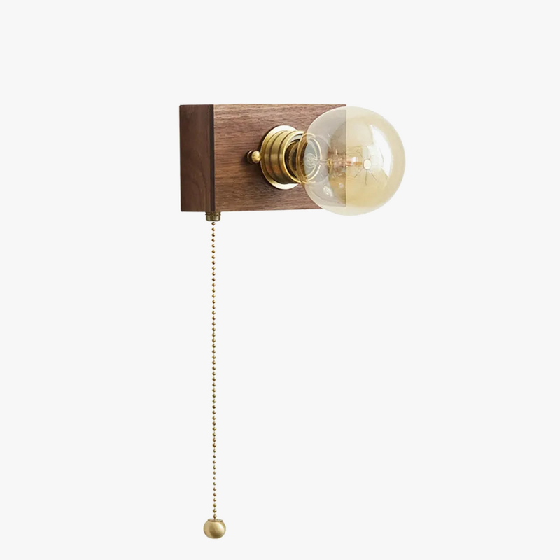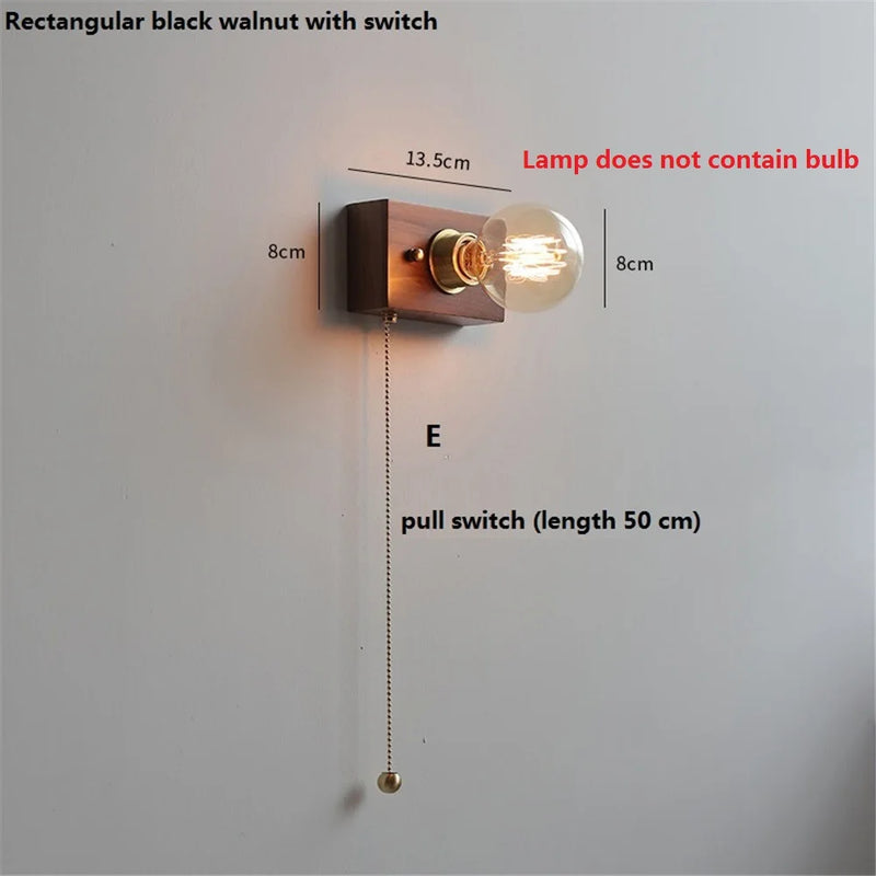 Applique murale vintage en noyer avec interrupteur à tirette