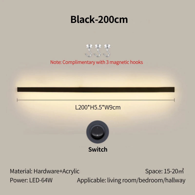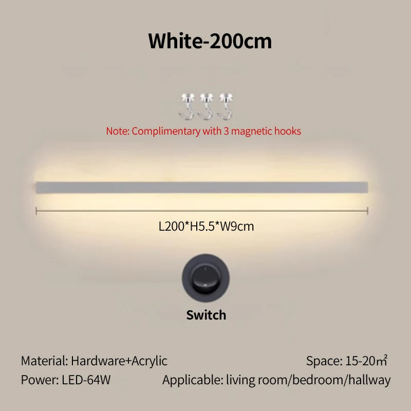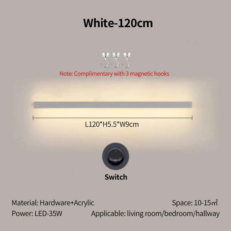 | Nom du produit | Applique salon canapé fond simple longue bande étagère lampe avec interrupteur protection des yeux chambre chevet éclairage mural |