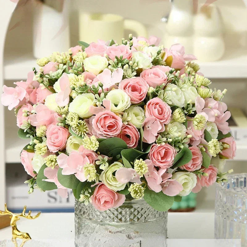 Ce bouquet d'hortensias artificiels est idéal pour tous ceux qui souhaitent enrichir leur décoration sans les contraintes d'entretien liées aux fleurs naturelles. Fabriqué en soie de haute qualité, chaque fleur est soigneusement conçue pour imiter parfaitement l'apparence des hortensias frais. Les nuances délicates de rose champagne ajoutent une touche romantique et douce, tout en s'harmonisant merveilleusement avec une palette de couleurs variée, qu'elle soit moderne, scandinave ou même industrielle.