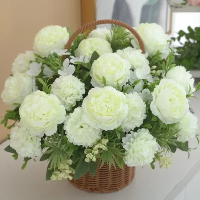 Offrez à votre intérieur une touche d'élégance et de fraîcheur avec notre bouquet d'hortensias et de pivoines artificiels, spécialement conçu pour la décoration intérieure. Ce magnifique arrangement, composé de fleurs en soie de haute qualité, allie beauté et praticité, vous permettant de créer une ambiance apaisante et accueillante dans n'importe quelle pièce de votre maison. Que ce soit dans votre salon, votre chambre à coucher ou votre salle à manger, ce bouquet s'intégrera harmonieusement dans votre décor, ajoutant une note de couleur et de vie sans nécessiter d'entretien.