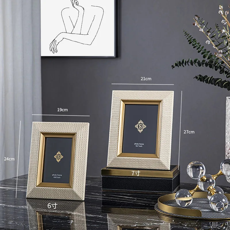 Cadre photo en métal cuir luxe pour bureau et décoration