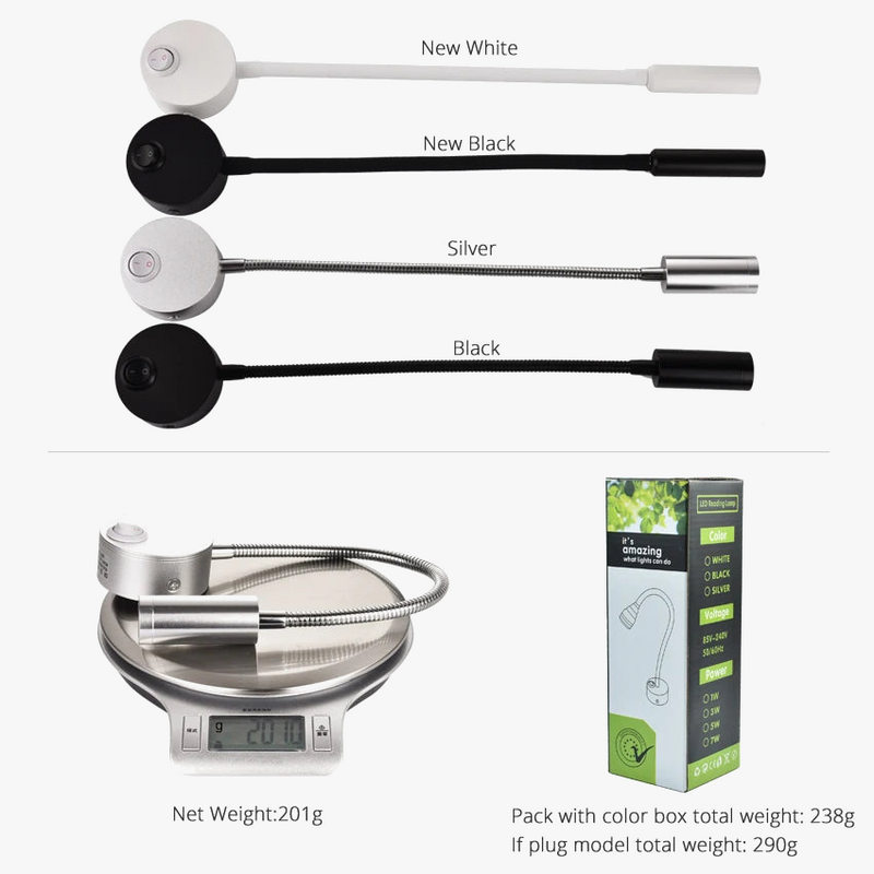 | Nom du produit | Lampe de chevet travail étude lampe de lecture appliques 3w led livre lampe mur veilleuse luminaires spot led ue us prise cordon |