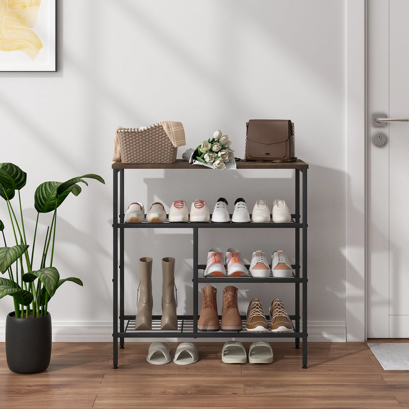 Étagère à chaussures en métal avec 4 niveaux de rangement ouverts