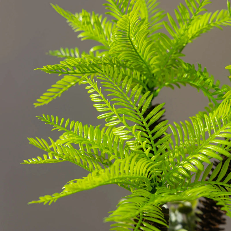 Les feuilles de ce faux palmier sont conçues pour imiter la texture et la couleur des vraies feuilles de palmier. Leur teinte verte vibrante apporte une touche de fraîcheur, tandis que le pot décoratif qui l'accompagne s'intègre facilement dans divers styles de décoration, qu'il s'agisse de design moderne, scandinave ou même industriel.