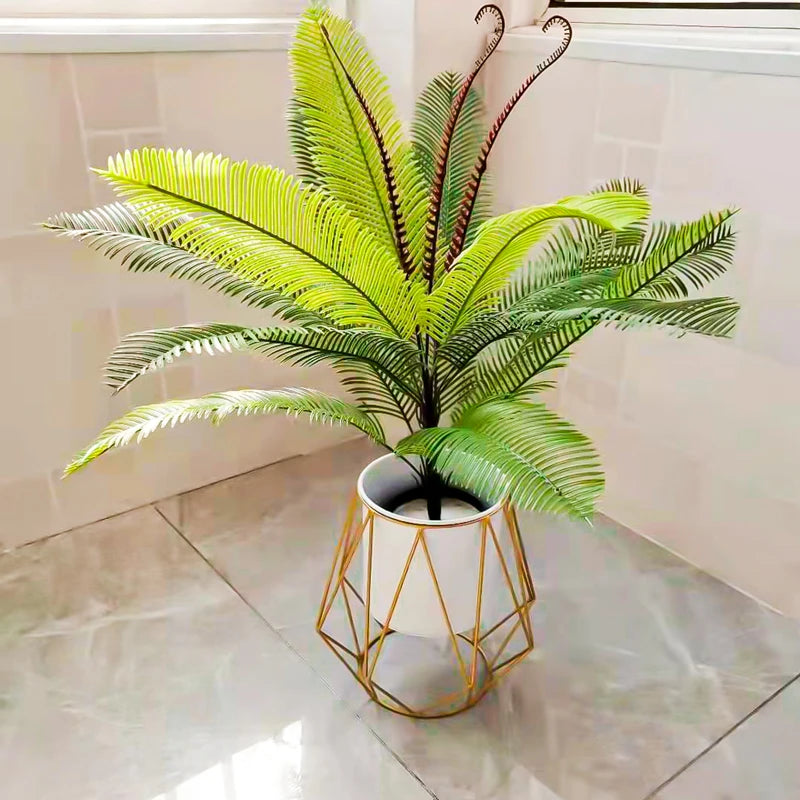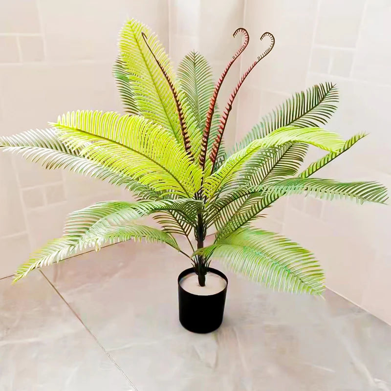 Ce palmier artificiel est conçu pour s'intégrer harmonieusement dans divers styles de décoration. Que votre intérieur soit moderne, scandinave, industriel ou même un peu bohème, il apportera une touche de vie et de couleur. Placez-le dans un salon au style contemporain, associé à des meubles minimalistes et des couleurs neutres, et observez comment il transforme l'espace en un paradis tropical. Dans une chambre, il peut servir de pièce maîtresse sur une commode ou près d'une fenêtre, créant un environnement apaisant et relaxant.