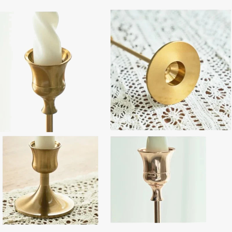 Kit de bougeoirs décoratifs en laiton doré pour mariage et dîner