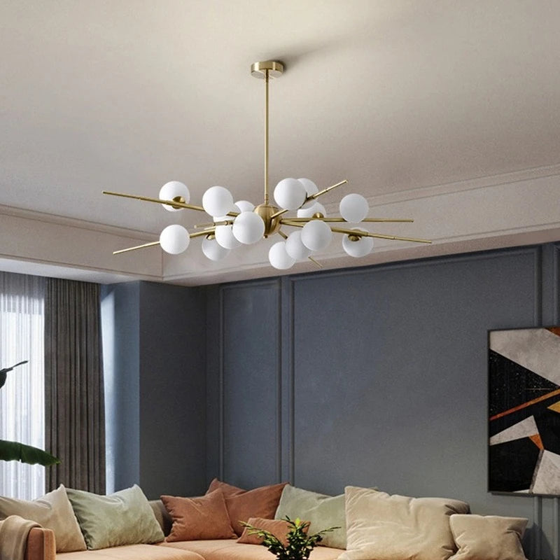 La lampe moderne simple en cuivre est dotée d'un design moléculaire unique qui lui donne une allure sophistiquée et contemporaine. Sa structure en fer, soigneusement travaillée, est revêtue d'une finition cuivrée brossée qui lui donne une apparence chic et élégante. Les ampoules LED sont disposées de manière à ressembler à une structure moléculaire, ce qui lui confère un look résolument moderne et tendance.