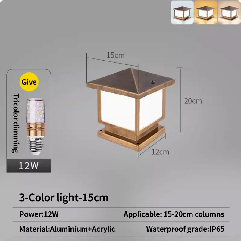 La Lampe pilier LED étanche E27 est pourvue d'une ampoule LED intégrée, garantissant une illumination brillante et constante. Cette source lumineuse est alimentée par une batterie solaire, ce qui en fait une option d'éclairage éco-responsable. Avec une puissance de 12W et un voltage de AC85-265V, cette lampe est capable de fournir une lumière puissante et efficace.