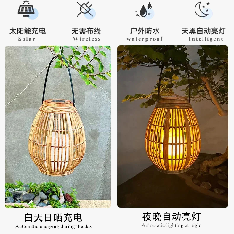 Lanterne solaire en rotin pour jardin et balcon décorative