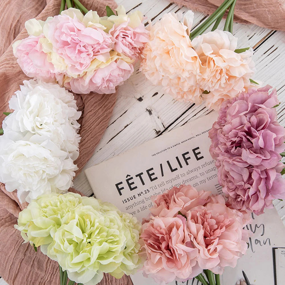 Lot de 5 pivoines artificielles pour décorations élégantes et mariage