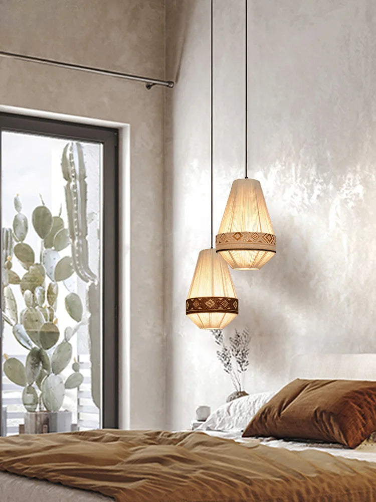 Lustre bohème en tissu tissé avec corde en coton et lin