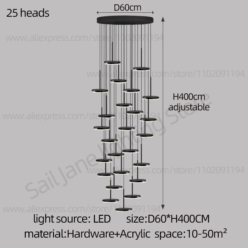 Le lustre circulaire led moderne nordique est un luminaire polyvalent qui s'intègre parfaitement dans différentes pièces de votre maison ou de votre établissement. Que ce soit pour éclairer votre salon, votre chambre ou votre salle à manger, ce lustre apportera une touche de modernité et d'élégance. Il trouvera également sa place dans un hall d'hôtel ou une salle d'étude, où il diffusera une lumière douce et apaisante. Son installation de type cord pendant offre une grande liberté de mouvement, vous permettant de l'ajuster à la hauteur souhaitée.