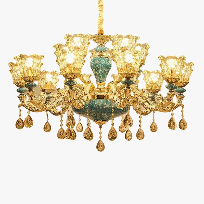 Le lustre de luxe en cristal et céramique est bien plus qu'un simple éclairage : c'est une pièce maîtresse qui transforme votre intérieur en un espace élégant et raffiné. Conçu pour captiver les regards, ce lustre allie magnificence et fonctionnalité, apportant une lumière douce et chaleureuse à votre salon, chambre ou salle à manger. Que vous souhaitiez créer une ambiance romantique lors d'un dîner aux chandelles ou illuminer votre pièce principale avec style, ce luminaire est le choix parfait pour sublimer votre décoration.