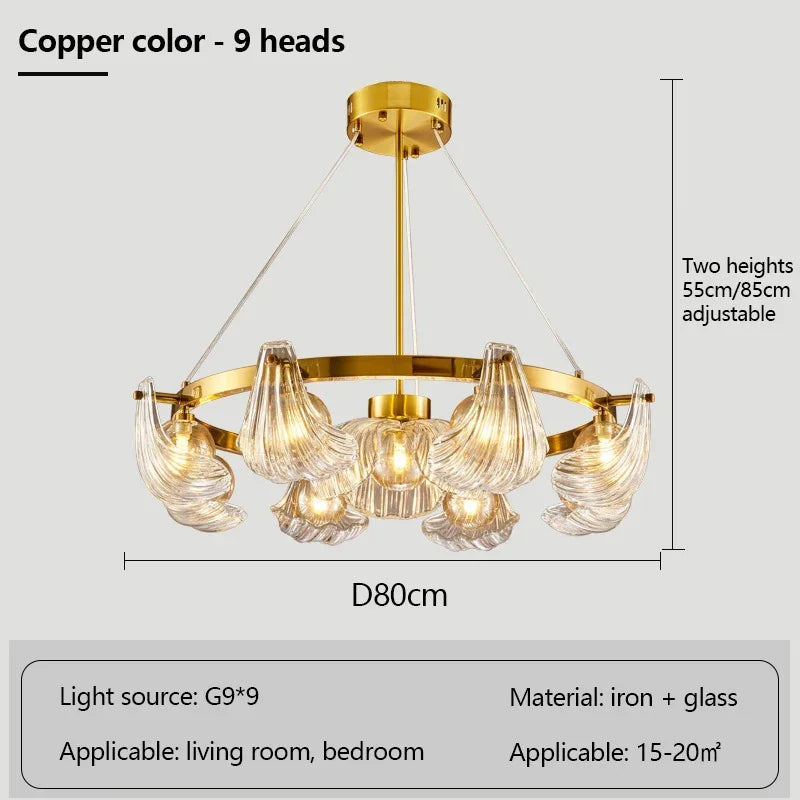 | Nom du produit | Lustre de luxe en verre de coquille avec lampes led créatives |