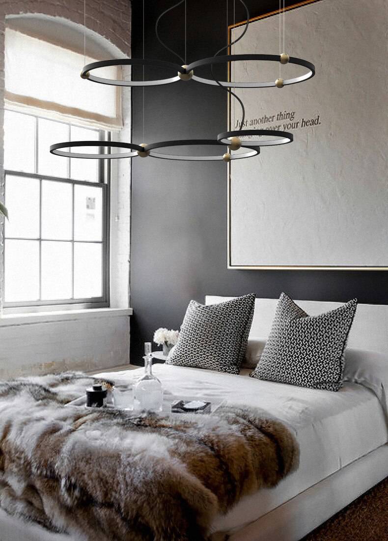 | Nom du produit | Lustre design à anneaux à led et boules dorées |