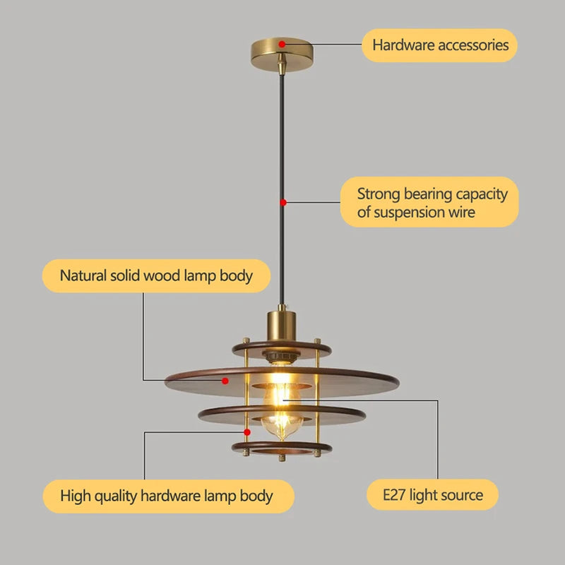 Nom du produit | Lustre en bois massif soucoupe volante design rétro pour bar et restaurant |