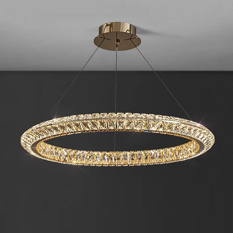 Le lustre en cristal doré est fabriqué avec des matériaux haut de gamme, garantissant non seulement une esthétique raffinée mais également une longévité appréciable. Les cristaux sont soigneusement sélectionnés pour leur clarté et leur capacité à diffuser la lumière, tandis que la structure en acier poli assure une solidité à toute épreuve. Ce luminaire est conçu pour résister à l'épreuve du temps, tout en conservant son éclat d'origine.