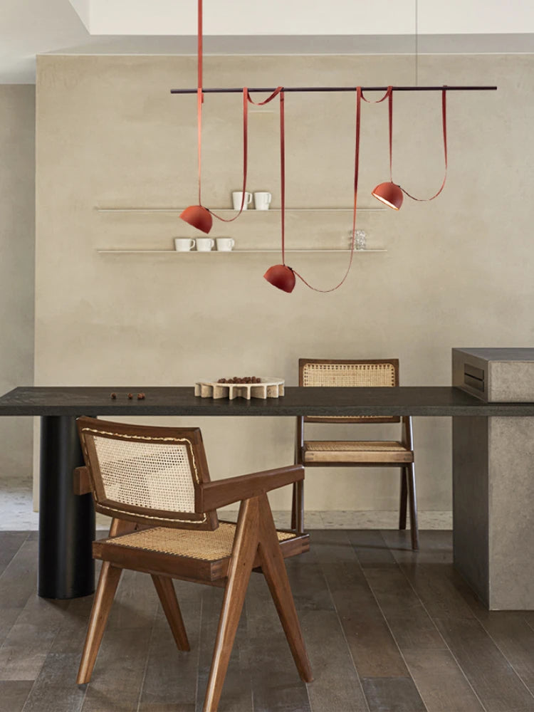 Le design de ce lustre est tout simplement époustouflant. Sa forme rappelant une ceinture, combinée à sa finition en aluminium plaqué, offre un look moderne et industriel qui saura séduire les amateurs d'art et de décoration. Les nuances de noir et d'orange de l'abat-jour ajoutent une touche de chaleur et de couleur à votre espace, créant une ambiance accueillante et confortable.