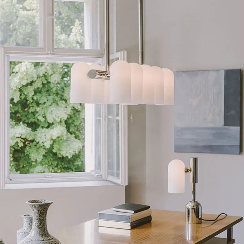 Les lignes épurées et la silhouette délicate de ce lustre font de lui un choix idéal pour des espaces variés. Que ce soit au-dessus d'une table de salle à manger pour des dîners chaleureux, dans un salon pour créer une ambiance conviviale, ou encore dans une chambre à coucher pour apporter une touche de romantisme, ce luminaire saura s'imposer tout en restant élégant.