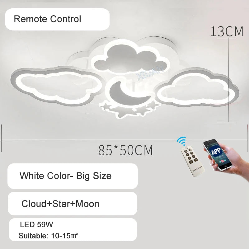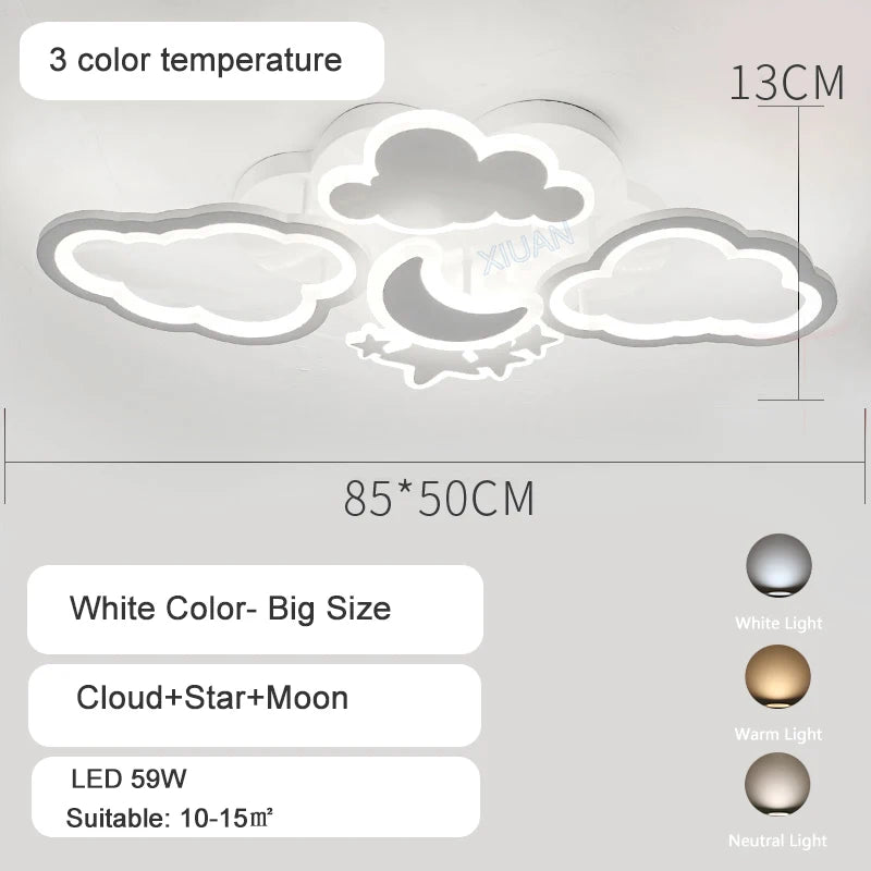 Laissez-vous séduire par le charme de notre Lustre LED moderne en forme de lune étoile nuage pour enfants, une véritable oeuvre d'art lumineuse pour votre intérieur. Ce luminaire unique se distingue par son design moderne et ludique, en forme de lune, d'étoile et de nuage, idéal pour éveiller l'imagination de vos enfants tout en illuminant leur chambre d'une lumière douce et chaleureuse.