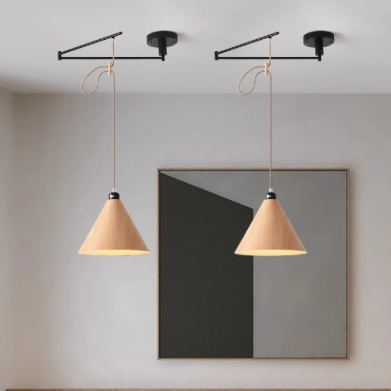 Nom du produit | Lustre moderne à led créatif avec bras rétractable en bois artistique |