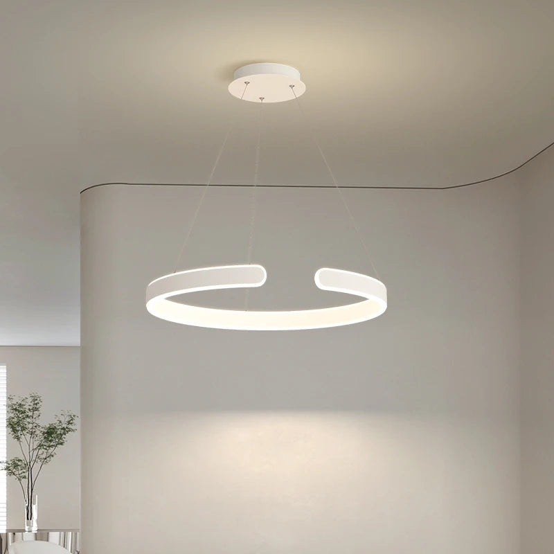 Le lustre se distingue par son style moderne, caractérisé par des lignes épurées et une finition en métal robuste. Sa conception en forme d'anneau lumineux est non seulement esthétique mais également fonctionnelle, offrant une lumière douce et agréable qui rehausse la décoration de votre pièce. Que vous optiez pour un décor scandinave minimaliste ou un style industriel audacieux, ce lustre s'adapte à toutes les ambiances. Sa couleur neutre et son matériau en fer lui confèrent une durabilité tout en restant léger au regard, ce qui permet de l'intégrer facilement dans n'importe quel environnement.