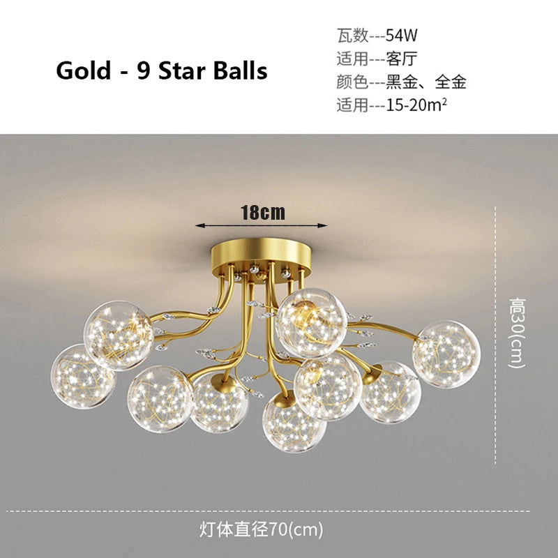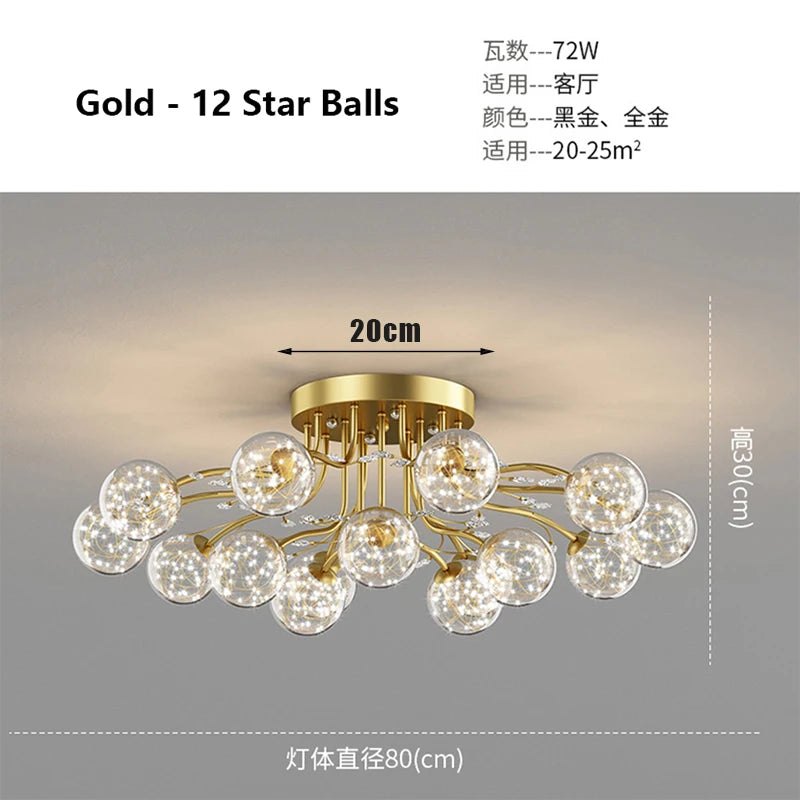 | Nom du produit | Lustre noir et or en verre avec cristal décoratif étoile |