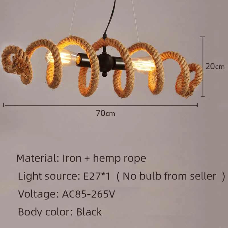 Nom du produit | Lustre rétro loft en corde de chanvre pour bar pub café |