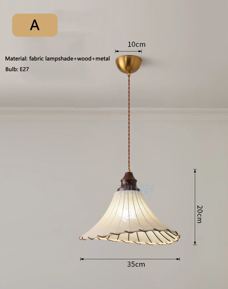 Lustre suspendu rétro wabi-sabi en lin pour décoration médiévale