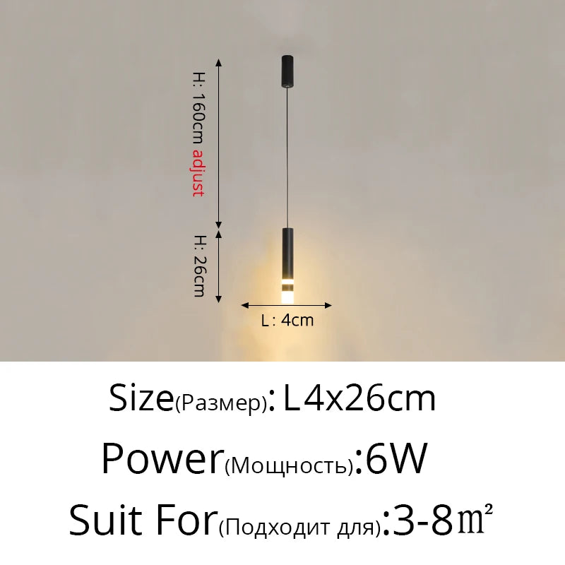 | Nom du produit | Moderne minimaliste led longue ligne unique tête lustre café bar lampe de table chambre lampe de chevet restaurant suspension lumières |