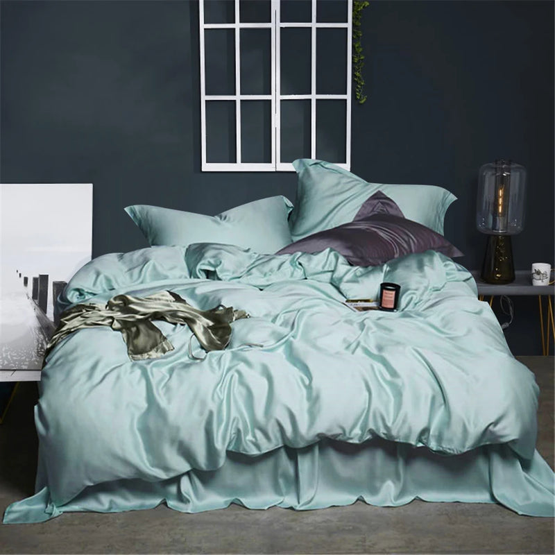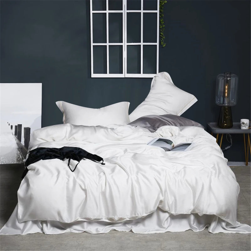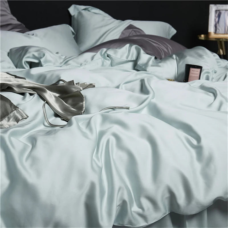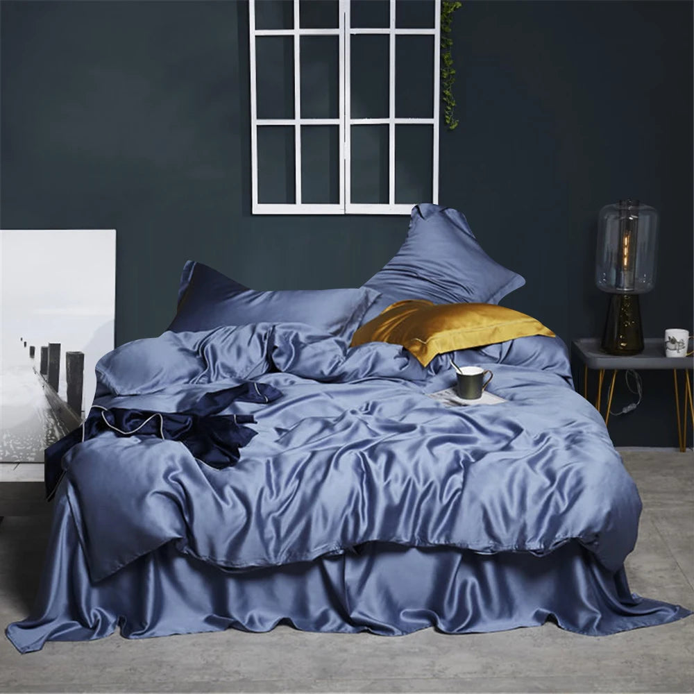 Parure de lit en soie luxe housse douce taies pour lit queen king
