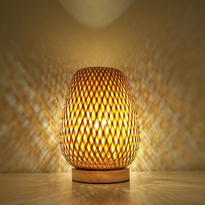 Petite lampe de table en rotin à intensité variable