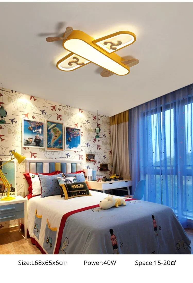 Plafonnier led design minimaliste en bois forme avion pour enfants