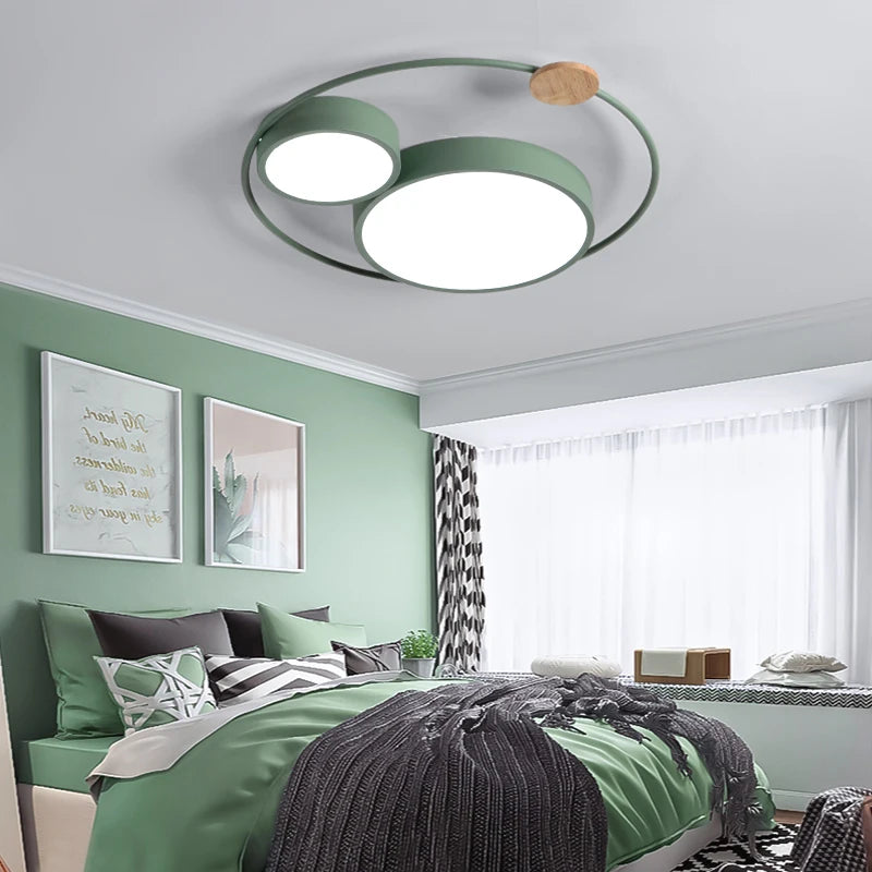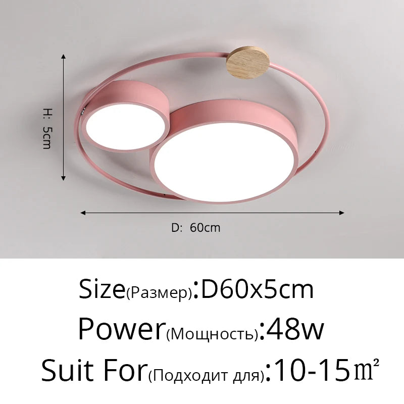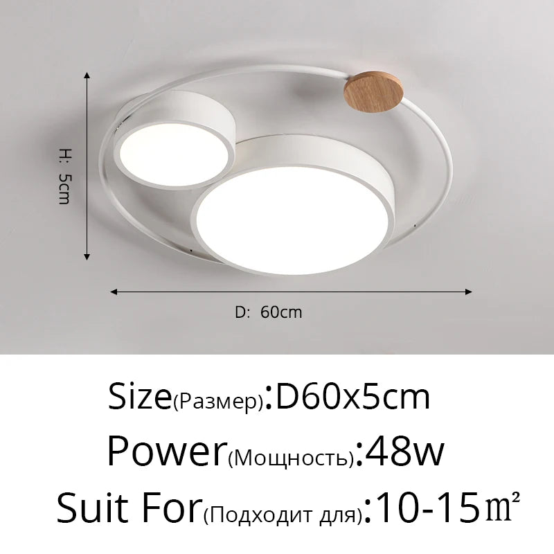 Plafonnier led nordique en bois acrylique décoration ronde macaron