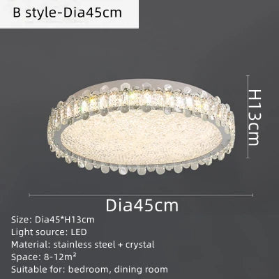 Le plafonnier LED rond moderne en cristal est conçu pour une installation en surface. Il se monte aisément au plafond de votre salle à manger, de votre cuisine, de votre chambre à coucher ou de votre hall d'entrée. Il s'adapte également à des espaces professionnels comme les restaurants, les hôtels ou les bureaux. Ce luminaire deviendra rapidement l'attraction principale de votre espace grâce à son design contemporain et son éclairage à LED.