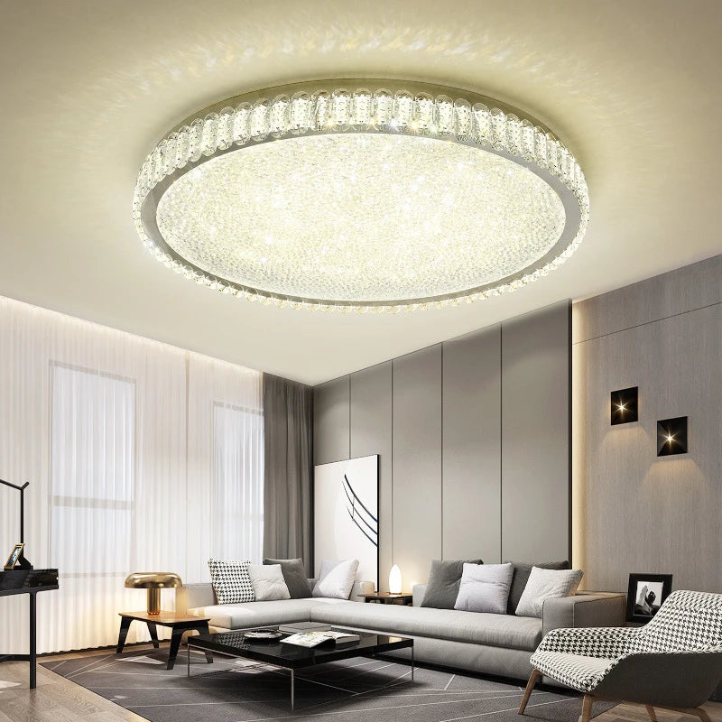 Le plafonnier LED rond moderne en cristal se décline en chrome, une couleur qui s'associe à merveille avec la brillance du cristal. Ce luminaire apporte une touche de sophistication à n'importe quelle pièce et convient à tous les styles d'intérieur.