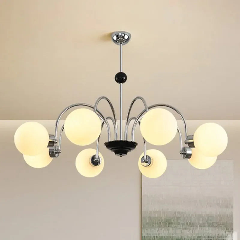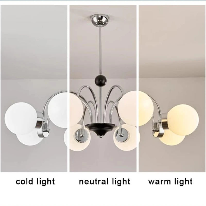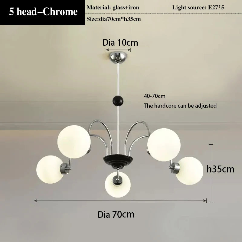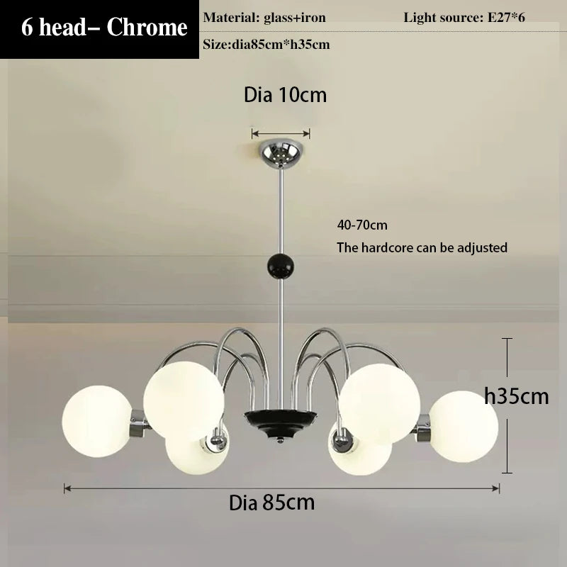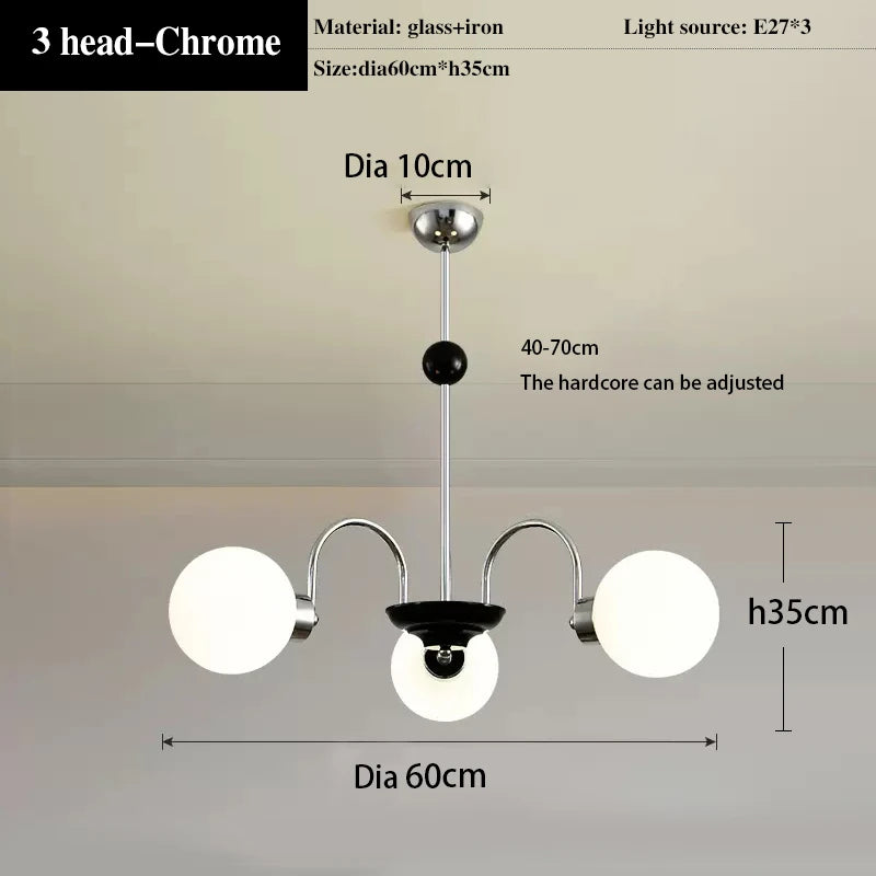 Le plafonnier LED suspendu est réalisé en chrome poli, ce qui lui confère un aspect brillant et moderne. Sa structure légère et aérienne est accentuée par des abat-jours en verre dépoli, qui diffusent une lumière douce et chaleureuse. Ce mélange de matériaux et de finitions en fait un choix idéal pour ceux qui recherchent un éclairage à la fois fonctionnel et décoratif.