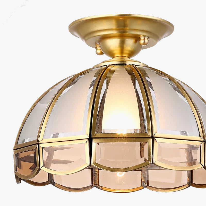Plafonnier moderne en verre rétro avec abat-jour en cuivre vintage