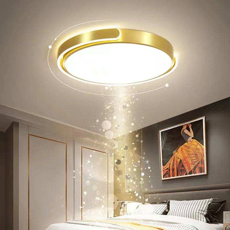 Doté d’un design moderne et épuré, ce plafonnier se distingue par sa simplicité. Le mélange harmonieux de matériaux tels que l'ironware et l'acrylique confère à ce luminaire une robustesse et une durabilité exceptionnelles. Son fini en fer plaqué apporte une touche d'élégance qui rehaussera sans aucun doute le décor de votre chambre. La couleur dorée de ce plafonnier ajoute une note de sophistication, faisant de ce luminaire un ajout précieux à votre décor.