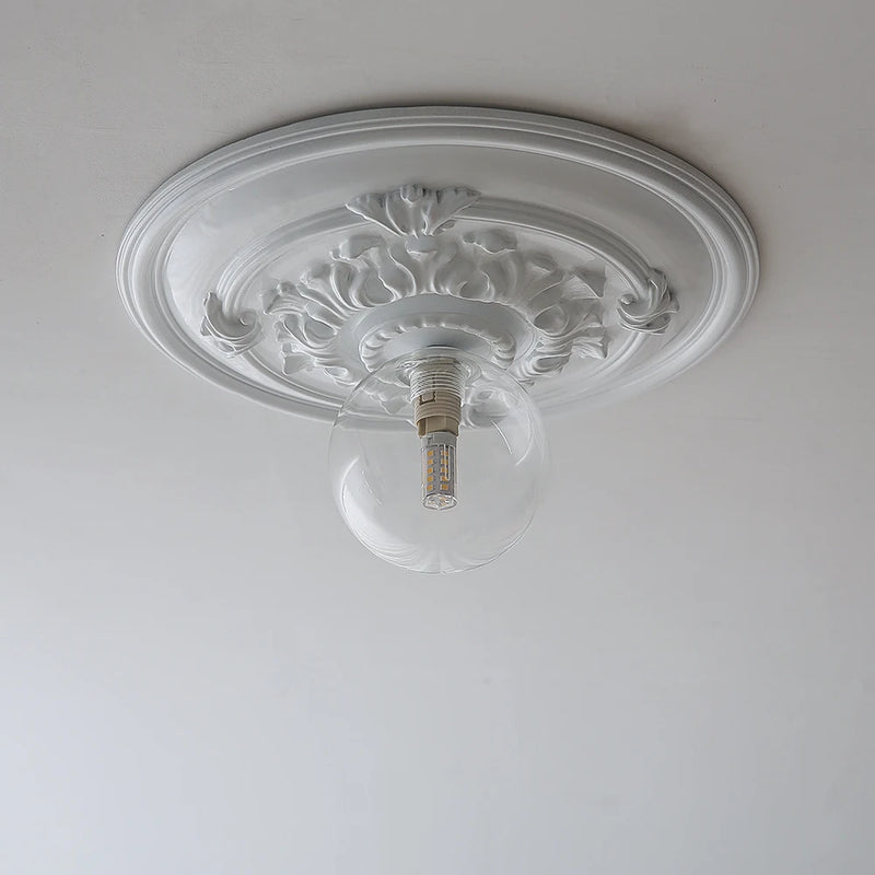 Ce plafonnier est une véritable pièce d'art qui donnera du cachet à n'importe quelle pièce de votre maison. Doté d'une structure en fer forgé, il dégage une robustesse et une élégance certaine. Le corps de la lampe en gypse, matériel durable et écologique, ajoute une touche d'authenticité à l'ensemble. Le design sculpté de la lampe, rappelant les ornements de l'époque classique française, est une véritable invitation au voyage dans le temps.