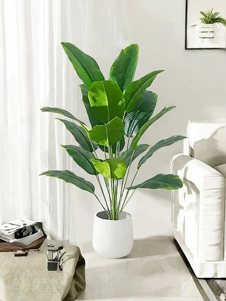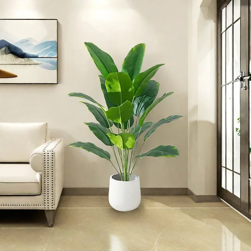 Dans une salle à manger, notre bananier et palmiers tropicaux peuvent devenir un point focal charmant, entouré de vos convives. Imaginez-le embellissant une table décorée avec goût, tout en ajoutant une note de fraîcheur à vos repas. Que vous optiez pour un style scandinave minimaliste ou un intérieur plus industriel, cette plante artificielle s'adapte à tous les styles.