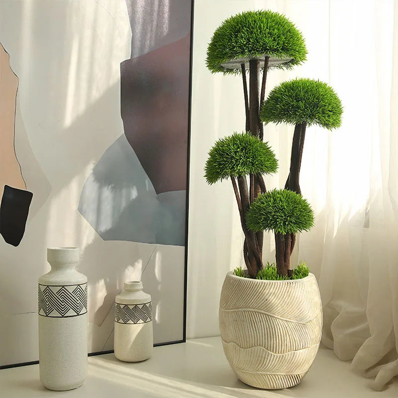 Ce bonsaï artificiel s'intègre parfaitement dans une variété de styles d’intérieur. Que vous ayez un intérieur moderne, scandinave, industriel ou même un décor plus classique, cet arbre en pot saura se fondre harmonieusement dans votre espace. Sa couleur verte éclatante et ses détails soignés apportent une touche de fraîcheur et de vie à votre décoration. Imaginez-le dans votre salon, trônant fièrement sur une table d'appoint ou près d'une fenêtre, créant ainsi un point focal qui attirera tous les regards.