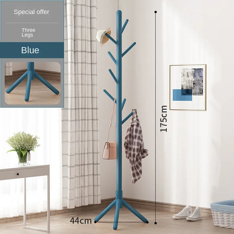 Porte-manteau vertical en bois massif pour vêtements et accessoires