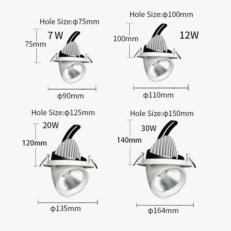 L'installation de ce spot LED encastrable est simple et rapide, ce qui vous permet de profiter de votre nouvel éclairage sans tracas. Avec ses dimensions adaptées (75/100/125/150 mm), il peut être installé dans divers types de plafonds, que ce soit dans un espace commercial ou résidentiel. De plus, ce produit est certifié CE, garantissant qu'il respecte toutes les normes de sécurité en vigueur.
