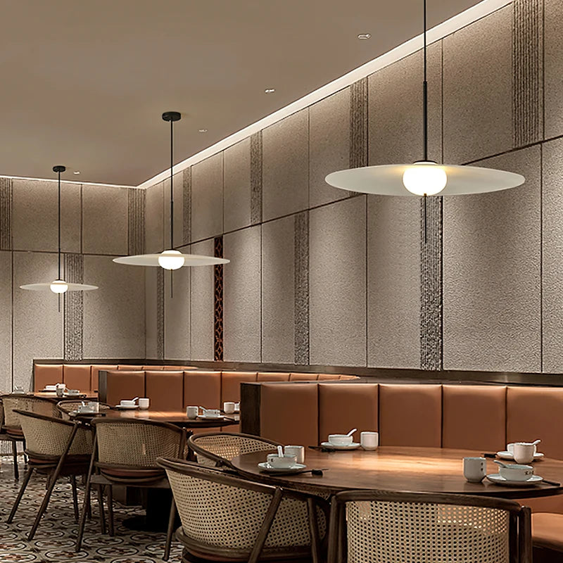 La suspension se distingue par son design inspiré du style nordique, caractérisé par des lignes simples et une esthétique minimaliste. Sa forme de soucoupe volante attire immédiatement l'œil et crée un point focal dans n'importe quelle pièce. La couleur blanche du abat-jour en verre stone diffuse une lumière douce et chaleureuse, idéale pour apaiser l'atmosphère et favoriser les moments de convivialité. Que vous souhaitiez éclairer un coin lecture, un bureau ou une table à manger, cette suspension est conçue pour s'adapter à vos besoins.