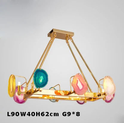 Fabriquée à partir d'une combinaison unique de fer et d'agate, cette suspension offre une allure à la fois robuste et délicate. La structure en fer, soigneusement plaquée, confère une solidité à l'ensemble, tandis que les éléments en agate apportent une touche de luxe et d'authenticité. Les nuances naturelles de l'agate créent des jeux de lumière fascinants, ajoutant une dimension visuelle captivante à votre espace. Que ce soit dans une salle à manger, un foyer ou une chambre, cet éclairage ne manquera pas de captiver l'attention de vos invités.